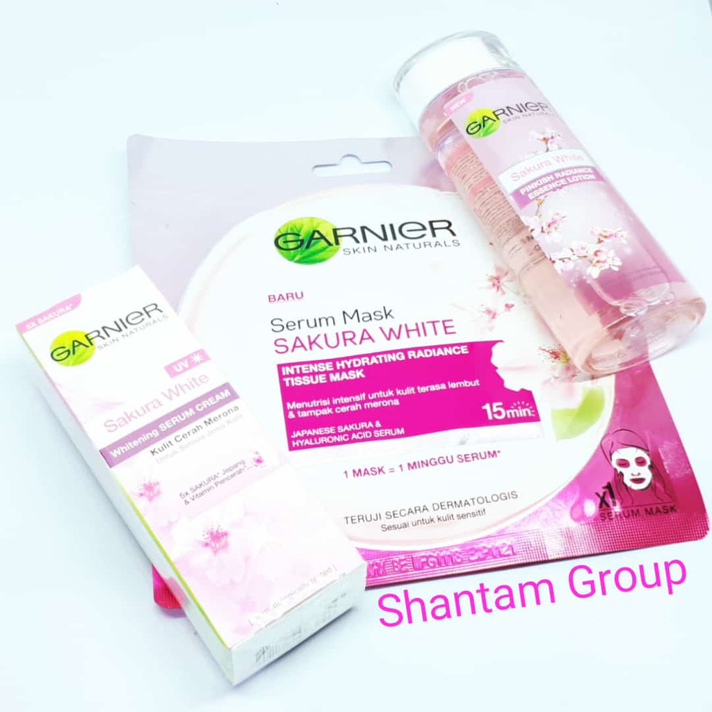 Skin Care Set Garnier Sakura White Serum Mask Cream Pinkish