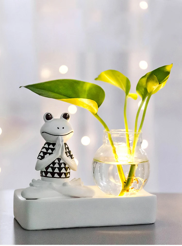 Direct Marketing Yoga Frog Creative Hydroponic Plant Vase Glass