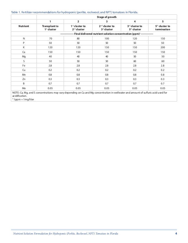 Nutrient Concentrations In Ppm Of Hydroponic Fertilizers When 3 69 Kg Download Scientific Diagram