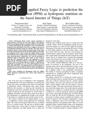 An Intelligent Applied Fuzzy Logic To Prediction The Parts Per Million Ppm As Hydroponic Nutrition On The Based Internet Of Things Iot Internet Of Things Hydroponics