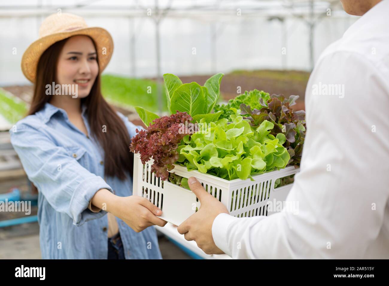 Manufacturers Send Baskets That Contain Only Clean And Quality Organic Vegetables From Hydroponics Farm For Consumers With Smile Consumers Receive Fr Stock Photo Alamy