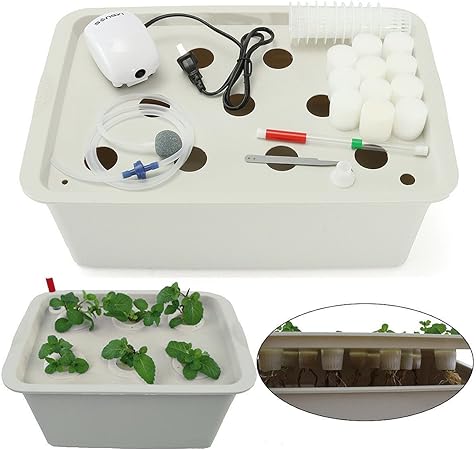 Household Hydroponic System Growing Kit Automatically Planting Box With 6 Holes Bucket Cover Air Pump Foam Buoy No Soil Complete Hydroponics Box For Indoor Gardening Amazon Co Uk Garden Outdoors