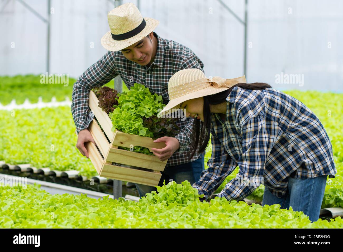 Hydroponics Greenhouse Organic Green Vegetables Salad In