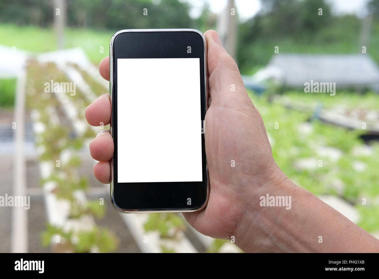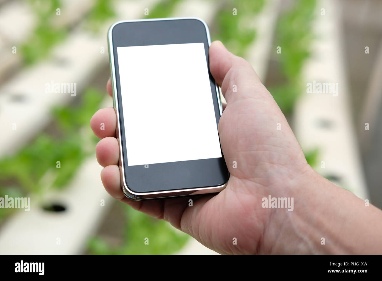 Agronomist Farmer Using Smart Phone To Monitor Ec Ph Temperature