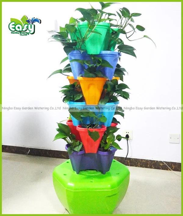 Vertical hydroponic farming tower. Vertical garden setup is also ideal for drip system. This is an amazing garden which takes care of itself. It is possible with the drip watering system.